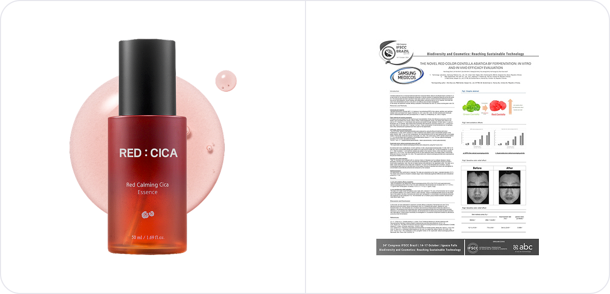 적색 병풀이 갖는 항산화, 피부 미백, 피부 주름 개선, 세포 재생, 세포 독성 완화 또는 항염증에 도움이 되는 성분으로서 국내는 물론 해외에서도 수요가 높아지며, 시장의 트렌드를 반영한 레드시카 화장품을 제안하고 있습니다.